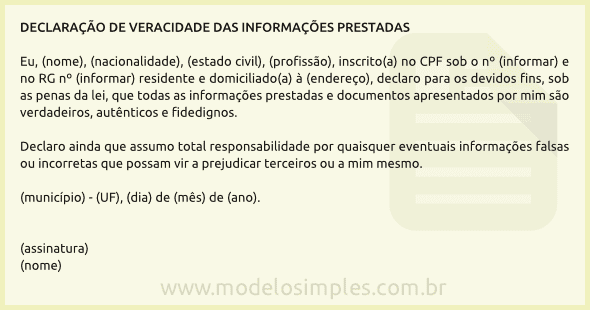 Dessa forma, apresentamos abaixo um modelo de declaração de veracidade das informações prestadas.